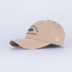 Snapbackkeps utan struktur med brodyrer på flera ställen.